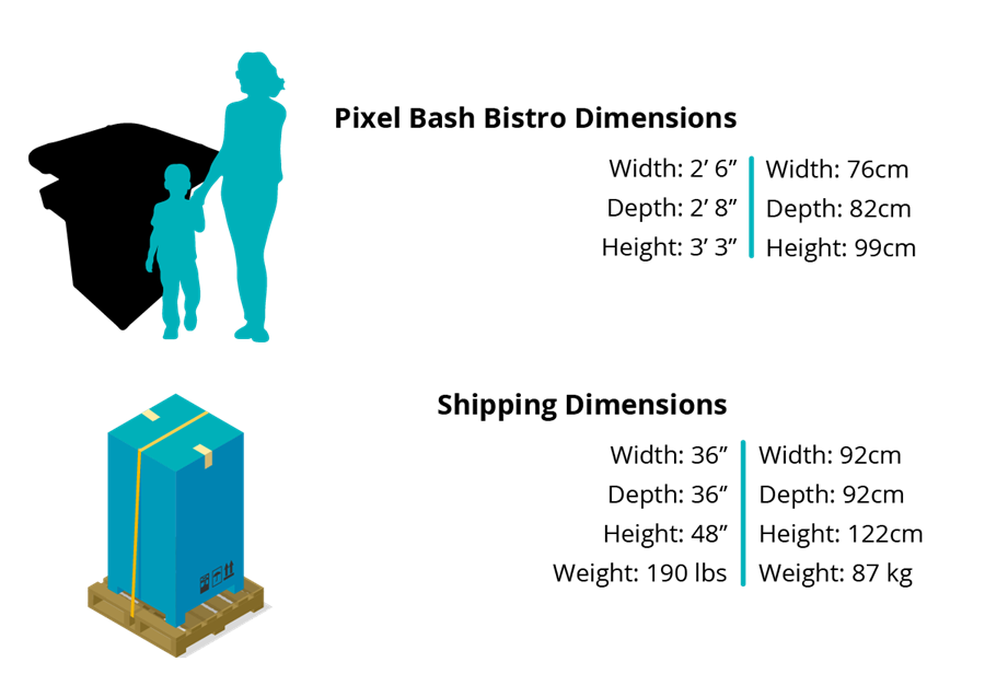 Our brand-new Pac-Man’s Pixel Bash Bistro is perfect for any home, entertainment center, or restaurant. With a sleek new design and a durable tempered glass top, everyone will love playing!